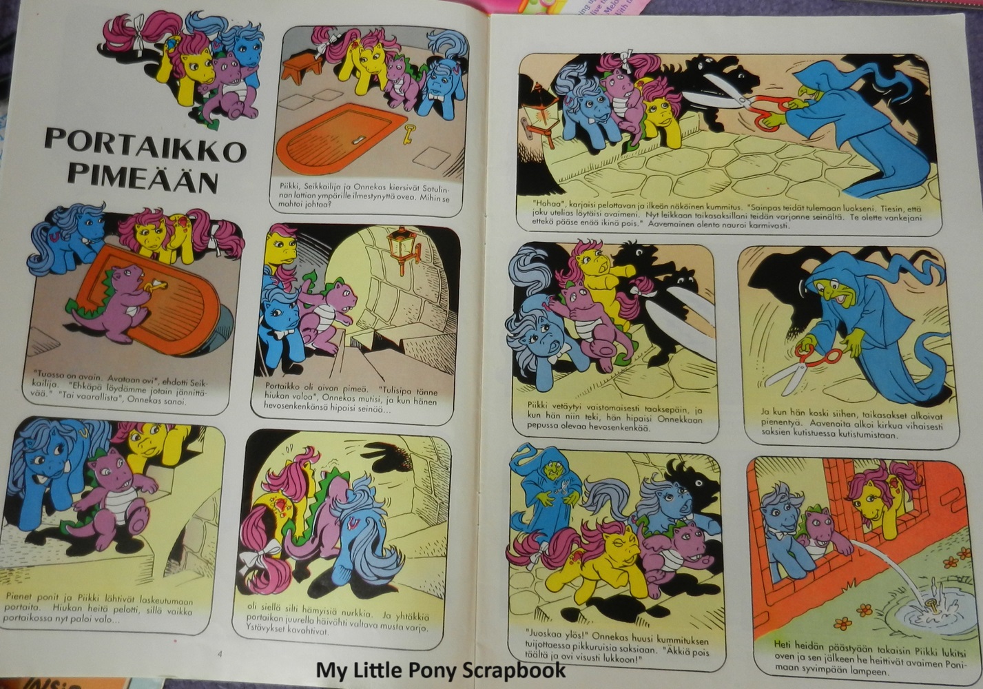 Unlike the German comics, the Finnish comics I own does not have adverts, letter pages or anything like that. They are simply a compendium of translated stories (with an occasional activity page), and my understanding is that several of these were printed. Many of the Finnish names for ponies come from sources like this, as most ponies in Finland were sold in English packaging and with English names. The comic pictured above comes from 1993, although the ponies featured on the cover and inside are from earlier years. The cover above was also seen on a UK comic in around 1991. The other comic I own comes from 1992, and again features ponies from earlier on the cover.