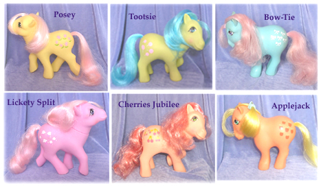 Applejack was still the clumsy one and Bow Tie the hairdresser. Cherries Jubilee was the carnival queen, and Lickety Split had a passion for ice cream. Posey inherited the mantle of My Little Pony gardener from Blossom, and Tootsie had the endearing habit of muddling her words.