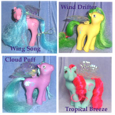 All flutter ponies pictured on these pages are from my own collection and all wings are original Hasbro wings - not repros - so you can get the idea of how they really should look in all their (Morning?) glory!