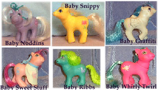 This set was another phenomenon that was completely overlooked by Hasbro UK. Although the gimmick of the turning head that these six characters introduced would later be seen in the UK release, none of the Peek-a-Boo Baby Ponies were ever sold in the United Kingdom.
