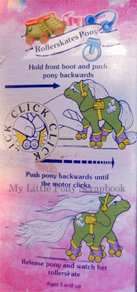 The mechanism can break and the wheels can come off with age and wear, though itis not impossible to find Rollerskates Ponies in working order and with all of their bits and pieces. A small motor operates in the front skate to provide a pull back mechanism to enable the pony to skate on a smooth surface.