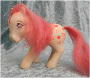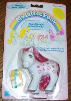 I believe that the North American release of the families also issued them in complete sets, whereas in the United Kingdom release, they were initially put out as seperate ponies. In their second year of issue, the families were sold together in 'gift sets'. None of the ponies really had much in the way of accessories - the adults had a hairbrush and ribbon and the babies either a coloured bow-tie (for the boys, as pictured on Baby Brother, above) or an 'I Luv You' hair clip (for the girls). Some were also sold during the Mummy Charm offer, meaning that there was often a second little friend hiding within the packages.