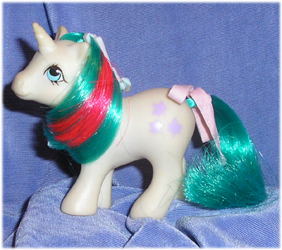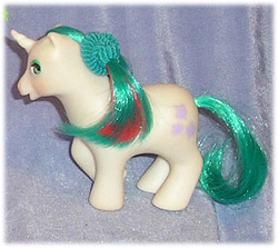 In my experience, it is Baby Gusty of the four Play and Care Set Baby Ponies from 1986 who is the most difficult to find - indeed, in ten years carbooting, the one pictured above is the only one I have managed to locate! As with several sets from this year, the characterisation of the pony in the comic and other UK mediums was weak. Baby Gusty played little if any major part in any of the stories of the time - and yet I always remember her as one of those baby ponies I wasn't quite sure existed. That, if nothing else, goes to show how poor distribution of this set was nationwide.