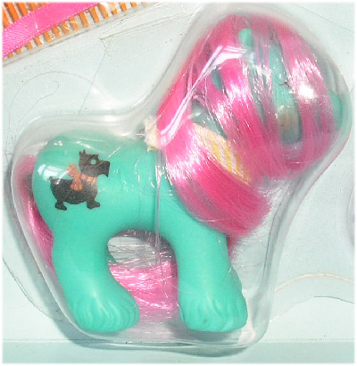 Baby Paws was one of the two Playtime baby Brother Ponies sold in the UK as part of the Playtime Baby Pony set in 1990. When introduced in the Pony Comic, he was depicted as a playful baby pony whose closest friend was a small black scottie dog called Scottie *how original!*