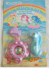 Ah, finally some sea pony sanity. This lady is Beachcomber, the only Pearly Baby Sea Pony who remained exactly the same regardless of which side of the atlantic she was being sold on.