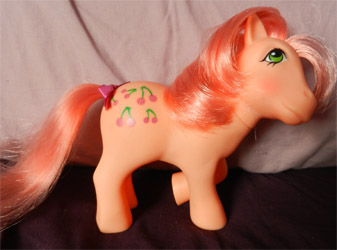 Cherries Jubilee was the carnival queen, mistress of the cherry blossom and the exorbitant parade. Like Posey, she was a popular character who would see releases again in 1986 and as part of the So Soft Pony line.