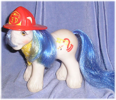 Just in case you couldn't guess, Chief was meant to be a fire-pony...though ironically he was rarely, if ever used for that purpose in the My Little Pony comics. On one occasion, he was roped into following the bad tempered First Tooth Baby Ponies into the land of Slitherwigs and Ladders in an attempt to keep them out of trouble. On another, he was immersed in the fight against the dreaded Smooze, that came and overtook Ponyland in one of the My Little Pony and Friends comics. His ladder would be used for rescuing silly kittens from trees, but it doesn't seem that Ponyland was overly flammable!
