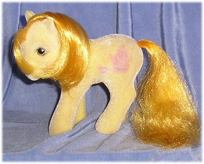 Crumpet is one of the more sought after So Soft Ponies, and definitely one of the more hard to find in nice condition. Though a baby version was made and issued the same year, there was never any other release bar this one of the adult pony.