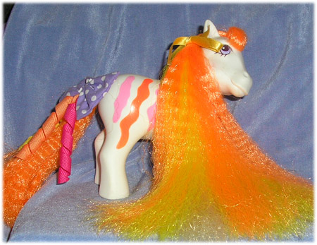 Please note that the ribbon in her mane is not original, and she is not wearing her aqua hair bow.