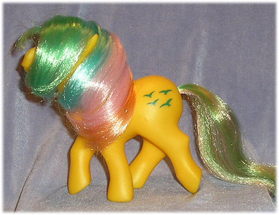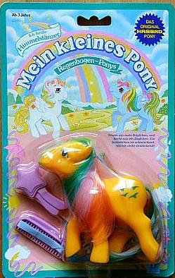 Himmelstänzer - in English "Heaven Dancer" or" Sky Dancer" - was based around the pegasus pony we know by the name Skydancer. However, there are significant differences. Aside from a darker body tone and new hair colours, Himmelstänzer is an earth pony and has a painted, not a glittery symbol. On some German publicity material she was given the alternative name Himmelstürmer.