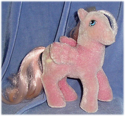 Hippety Hop was the only one from the second lot of characters to have a place in the final 1987 So Soft Pony set. Re-released with the shorter flocking style that this set sported, it is often possible to distinguish which group your pony came with by careful inspection of the fuzz ;)