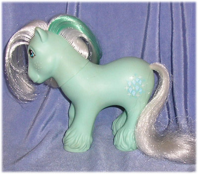 In terms of his character, I always thought Ice Crystal was the only sane one of the bunch. He was obviously a winter pony, and he had special magic associated with that season - allowing him to freeze water into ice and, more significantly, make ice slides for the other ponies to play on. For this reason - much loved by Baby Ponies!