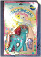 The accessories I have given for this pony are based on what my MOC German Lollipop has, due to the fact the style of card is the same as the UK release. This normally indicates the same accessories, but if anyone has a MOC UK-carded Lollipop that begs to differ, please get in touch so I can make a correction (or a confirmation!).