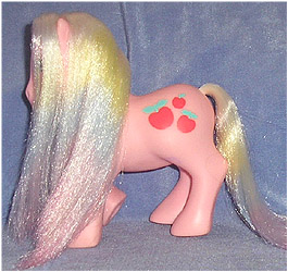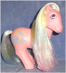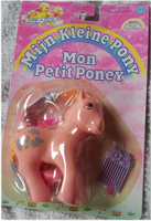 As can be seen from the pictures below, the ponies were sold on seperate cards and though their accessories did follow a theme, they were by no means identical. All had flower picks and ribbons.