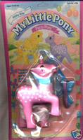 So, the answer to the puzzle seems to be simple. Since both she and I bought our ponies new in the same area of England at the same time, and we both bought them from English stores on English cards, both versions of Milky Way must have been sold in the UK. And to further back it up, I have since acquired my own loose Milky Way with white stars from a carboot sale over here.