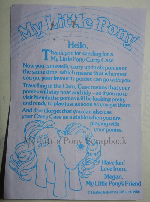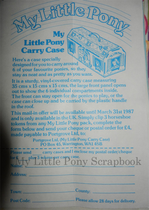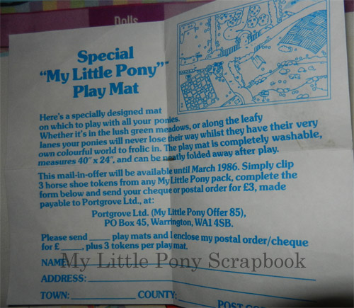 There were other things for us to send off for, though, in the early years at least (joy!). These included things such as carrycases and playmats (not a substitute, I hasten to add, for all the wonderful Mail Order ponies being given to kids Stateside).
