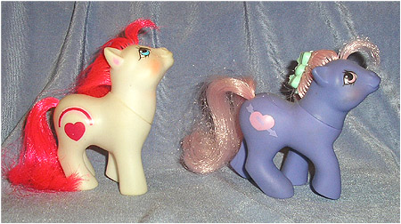 I don't really know why these are twins, since Hasbro's twin theory generally involves some feature in common, but nonetheless, this is who they are. One eary rumour named the white one as Red Rainbow, but, although this is a cute and popular name for her, it has not been officially confirmed. In fact, they do not appear to have been given actual names of their own. They were released through a stationery company offer of some kind, I think - they were not available in the UK.