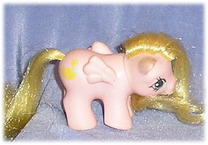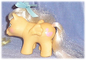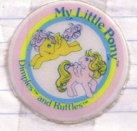 There appears to have been some indecision over the names given to these two ponies when they were first released. It's a well known fact among UK collectors that their puffy sticker did not come with their own names on, but the names "Dimples and Ruffles", suggesting that they might have had their own special UK names over here. In the end, though, it wasn't to be - and the ponies themselves retained the same identity as the North American release. All publicity material refers to them as Nibbles and Dibbles.