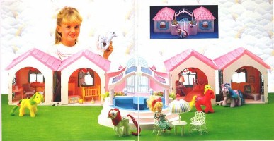 The Paradise Estate was the crowning glory of all My Little Pony playsets. Costing a whopping £60 in UK stores (which was the main reason I never had one, LOL), the Estate was first introduced in the My Little Pony Movie, as an alternate home for the Ponies after the Smooze wiped out Dream Castle. Technically, therefore, it belongs in 1986 - but it's UK release coincided with the characters from the film in 1987, which is why it's here. Equipped with furniture of all kinds - televisions, couches, clocks, lamps, tables, chairs - even a fridge of goodies and a swimming pool - this was literally, every pony's paradise.