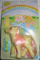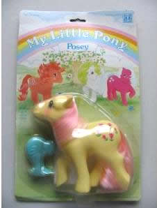 Posey, a mild, sweet natured little pony with a passion for flowers, was first introduced to ponyland in 1985 as part of the Groom and Style set. Issued with pink painted tulips, she would be so popular that, in the following year, Hasbro decided to continue her release in Europe and the UK along with new characters.