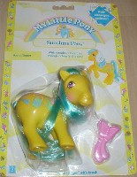 For some reason the Sunshine Ponies were not sold in the United Kingdom with ribbons, only combs. Each was sold on a bordered card in yellow.
