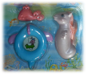 Surf Rider was one of the quieter of the original set of Baby Sea Ponies when it came to the UK comics. She came with the fish design float in purple and blue, and she was the only baby sea pony to come with this float.