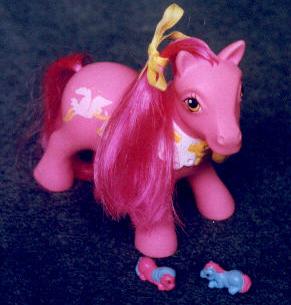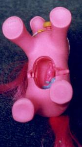 Oh boy. What can I say about this pony. Honestly, I find her a bit concerning. Not because of the theme of a pregnant My Little Pony, but rather the fact that, if you press the button mechanism and she's at the wrong angle, you might just be firing twin babies across the room.