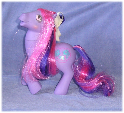 Talk a Lot is the lesser publicised of the two Sweet Talking Ponies, which I personally find a shame, because I think she is the prettier of the two! Talk a Lot did not even appear on the original insert for this set release in the UK. In spite of this, she was sold worldwide in the same way as Chatterbox. As you can see from the image of my Mint in Package Talk a Lot, Chatterbox was far more interesting to Hasbro and was featured on the front of BOTH pony's boxes, not just her own!