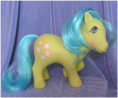 Tootsie's most infamous comic incarnation was of a pony who, well meaning and friendly, constantly got her words muddled up when she was excited. Being that this was ponyland, where odd and magical things could happen, whenever she muddled her words lollipops would spring up from the ground. This made her an instant hit at parties!