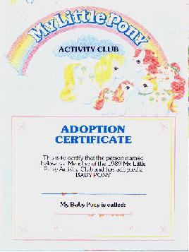 Certificate of adoption for Baby Pony