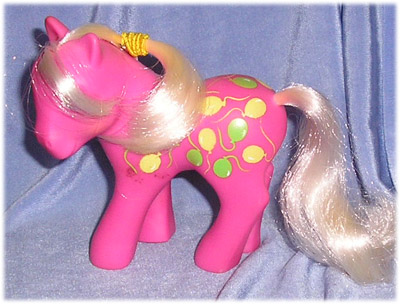 The first thing that has to be said about Up, Up and Away is that her name is definitely a contender for most stupid pony name, ever. Aside from having the dubious honour of a My Little Pony Tales Episode named after her, it's obviously a reference to her balloon symbols - Hasbro certainly liked their balloon ponies!