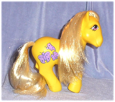 Her hair is interestingly blond - rather like doll hair - and not a ponyish colour at all. The closest match I could find was with my brown My Pretty Pony - made at least thirteen years earlier!