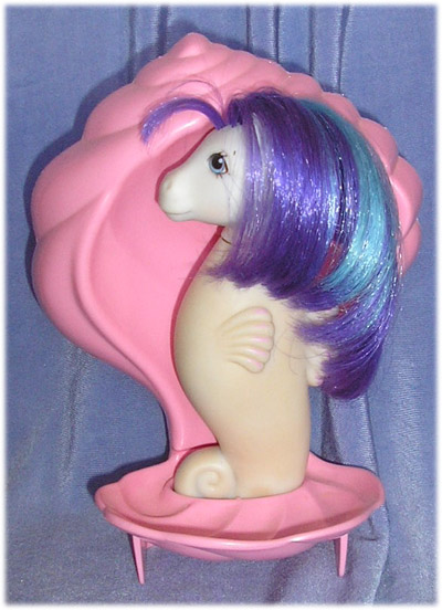 Sea Breeze was one of the characters who was issued with the new "conch" style shell, since she did not have the new "looking up' pose. She, along with Sea Breeze and Sea Mist also had a second streak of colour in their mane.